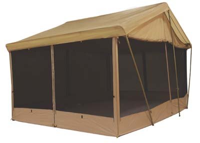 - Tent Area: 140 Sq Ft - Tent Floor: NO FLOOR - Tent Fly Cover: INCLUDED - Tent Color: TAN / Khaki