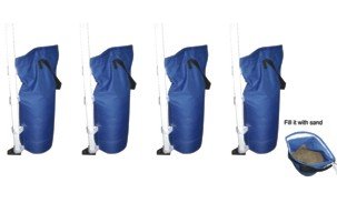Canopy Sand Bags to be used with any Canopy. Add extra stability to your Gigatent Canopy with the use of these deluxe Sand Bags. They help secure your canopy so you can enjoy parties, events and weddings in windy conditions. Holds up to 12 lbs. (We strongly recommend to stake down your canopy with guy lines in addition to using sand bags.) Set is sold as 4 or 6 Sand Bags. Canopy Sand Bags come in 2 colors: White and Blue. They are a perfect match for both colors of the GT004 Party Tent. Easily attach the Sand Bags to your canopy leg frames with the handy Velcro strips. The Sand Bags are easily portable with the use of the heavy duty carry handle. The Canopy Sand bags are made of Heavy Duty polyester fabric. DOES NOT INCLUDE CANOPY AND FRAME DOES NOT INCLUDE SAND.